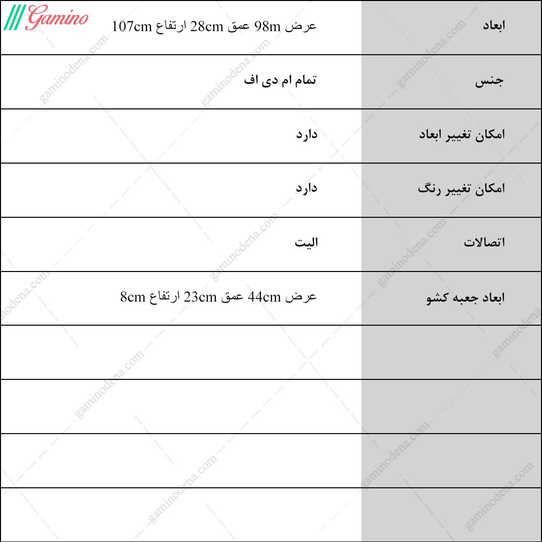 - ابعاد کلی محصول : عرض 98 ، عمق 28 و ارتفاع 107 سانتی متر