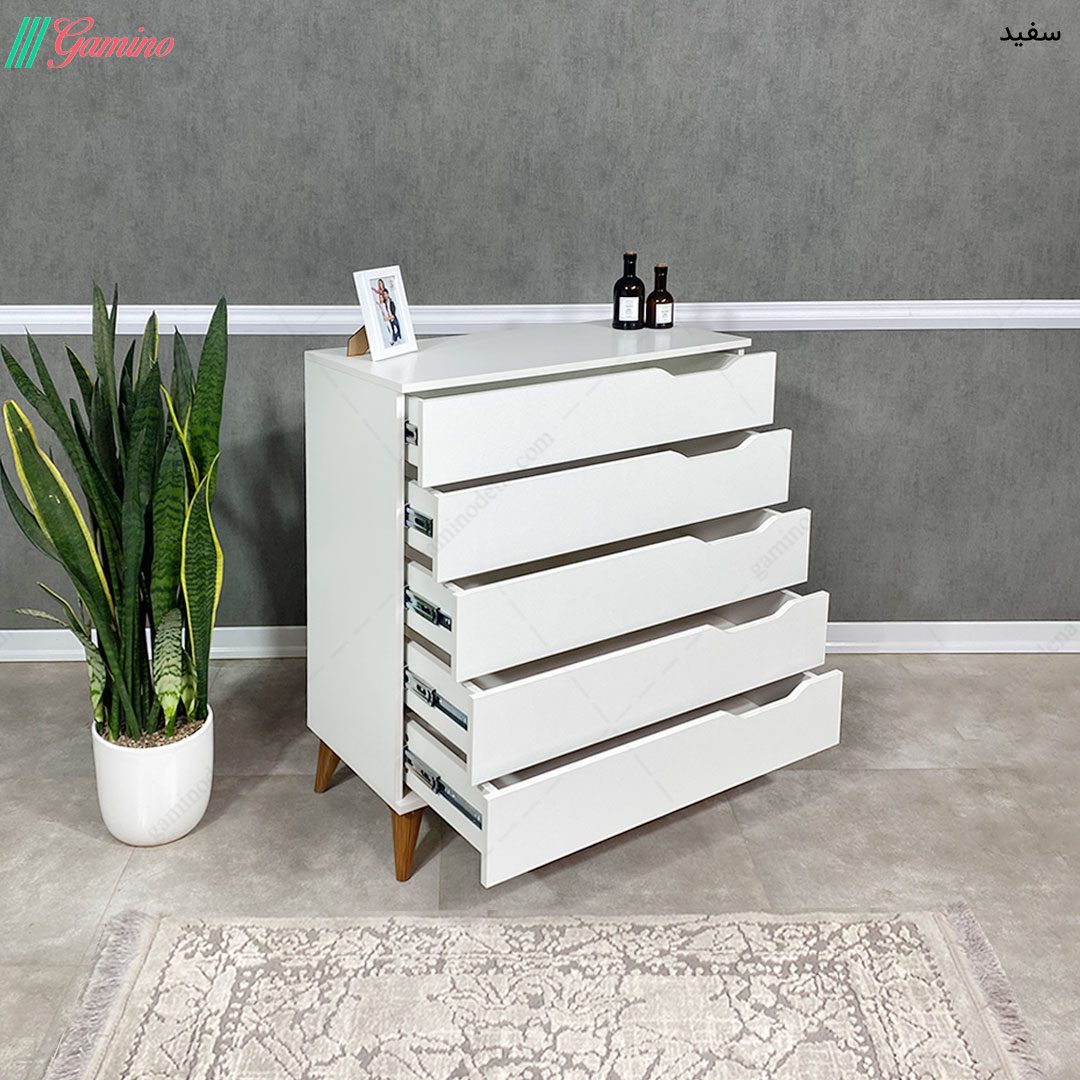 یکی از دراور های بسیار زیبای مجموعه گامی نو، این محصول دراور 5 کشو فرنیا است که با دستگیره های زیبیا و نوع طراحی منحصر به فردش همه را مجذوب خود نموده است. در ادامه شما را با ویژگی های این محصول به طور کامل آشنا خواهیم کرد.