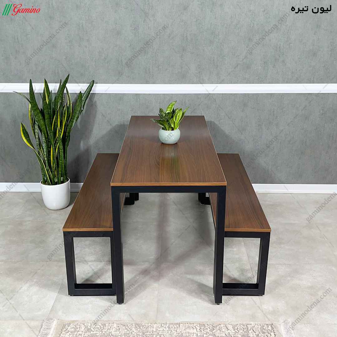 میز ناهار خوری شش نفره فلزی و ام دی اف مدل دنا(با نیمکت)