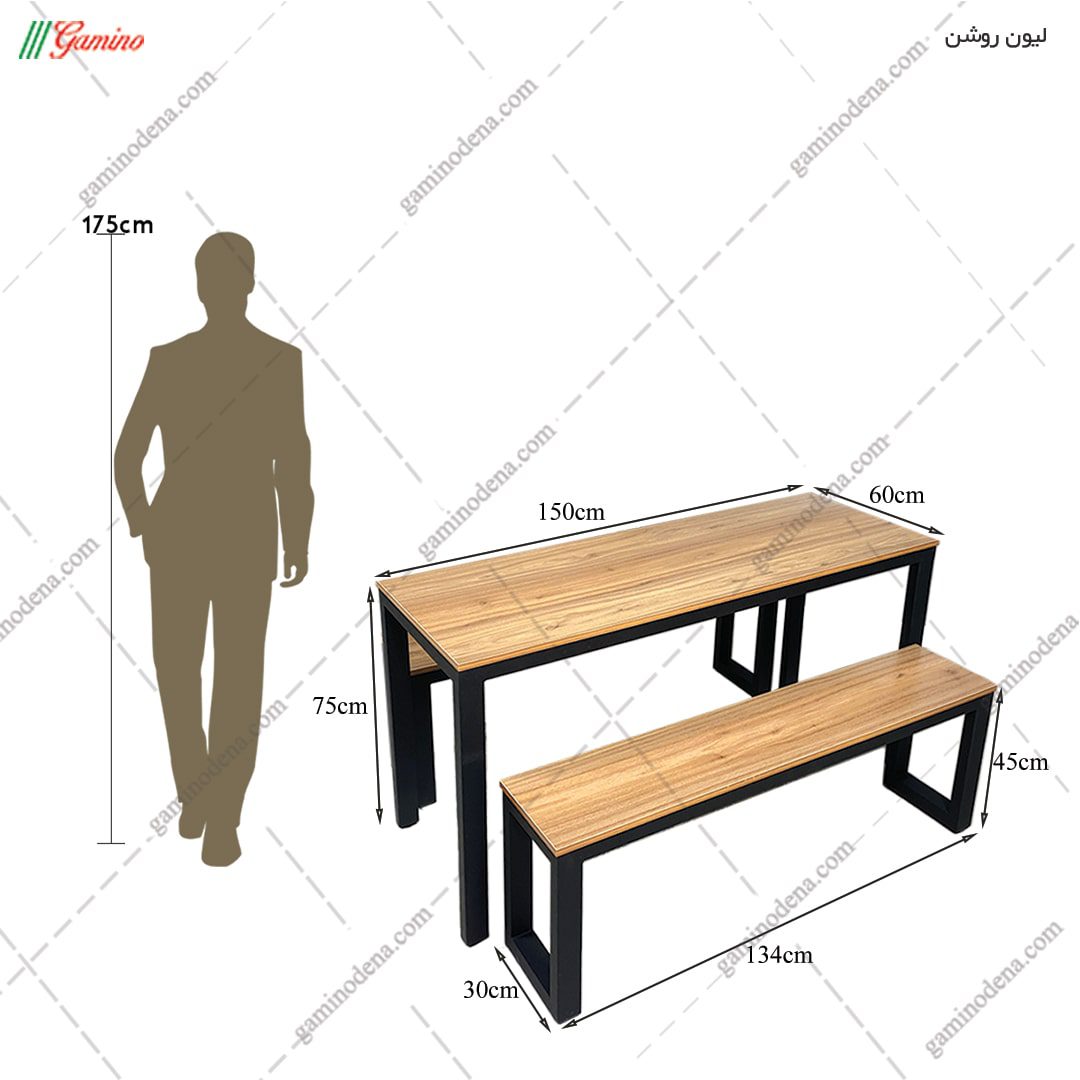 - ابعاد نیمکت نشیمن: طول نشیمن 134 * عرض نشیمن 30 * ارتفاع نیمکت 45 سانتی متر