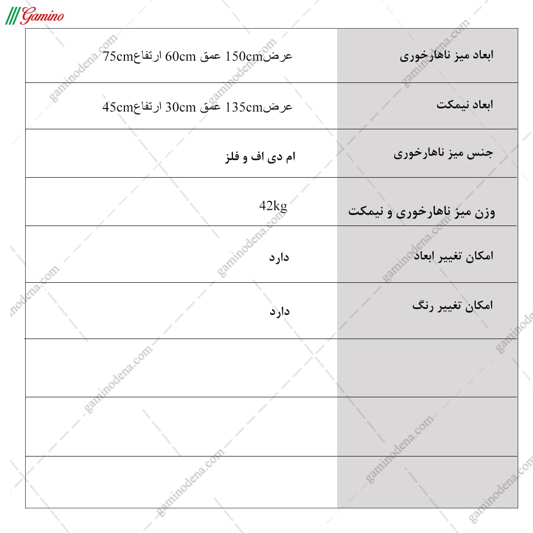 مشخصات میز ناهار خوری دنا + نیمکت