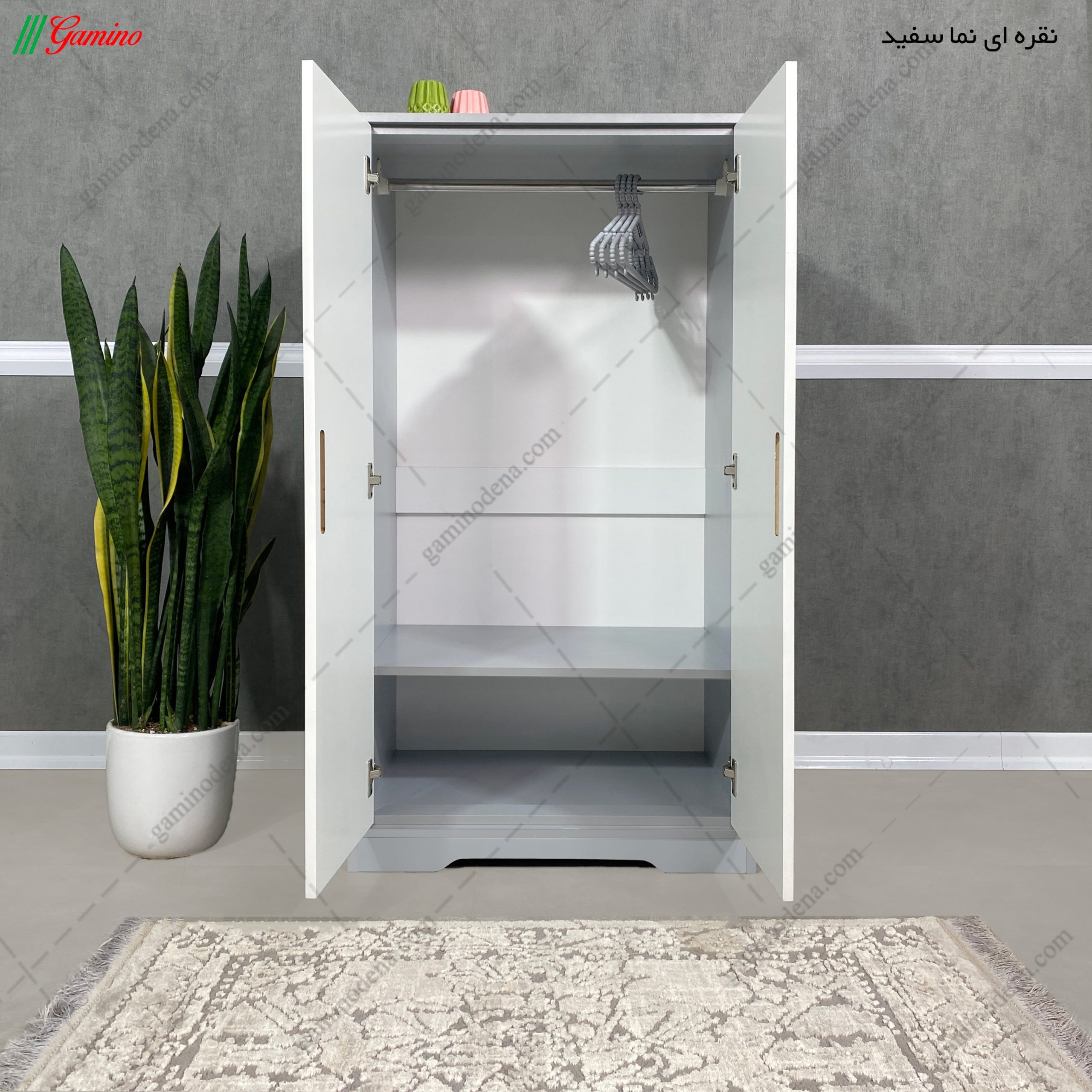 - داخل کمد توسط یک طبقه به دو بخش تقسیم شده است