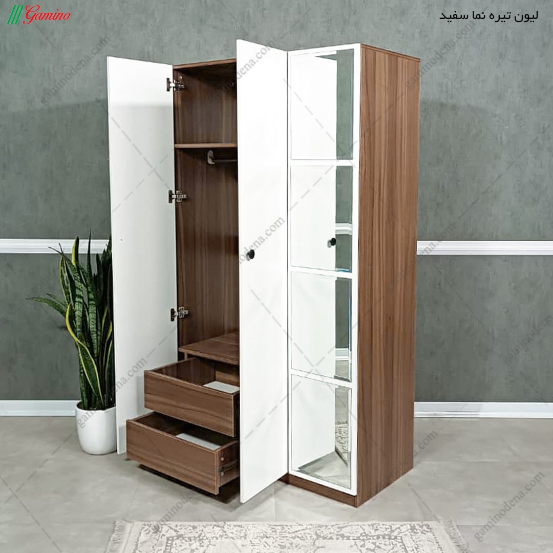 - بر روی درب کمد یک آینه به صورت سراسری بر روی درب قرار گرفته است.