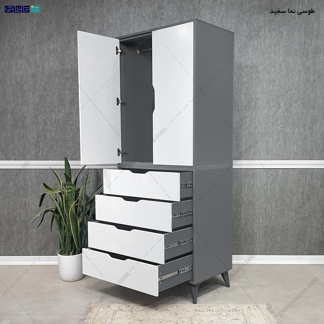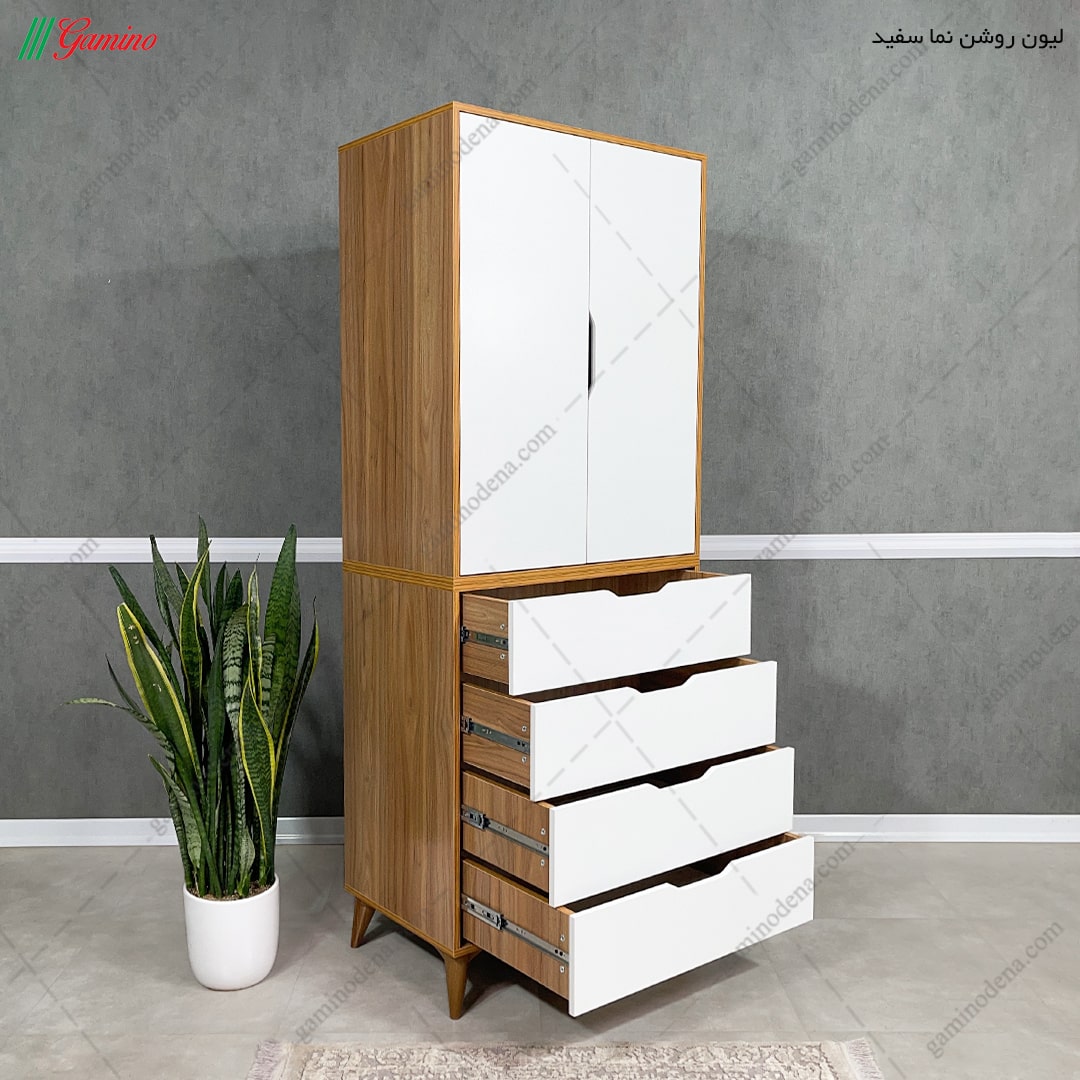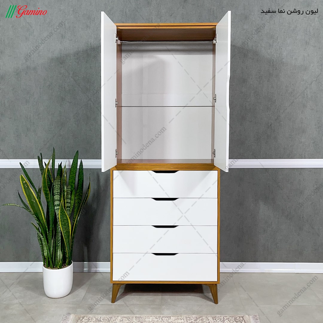 - کمد لباس به صورت 2 تکه طراحی گشته است.