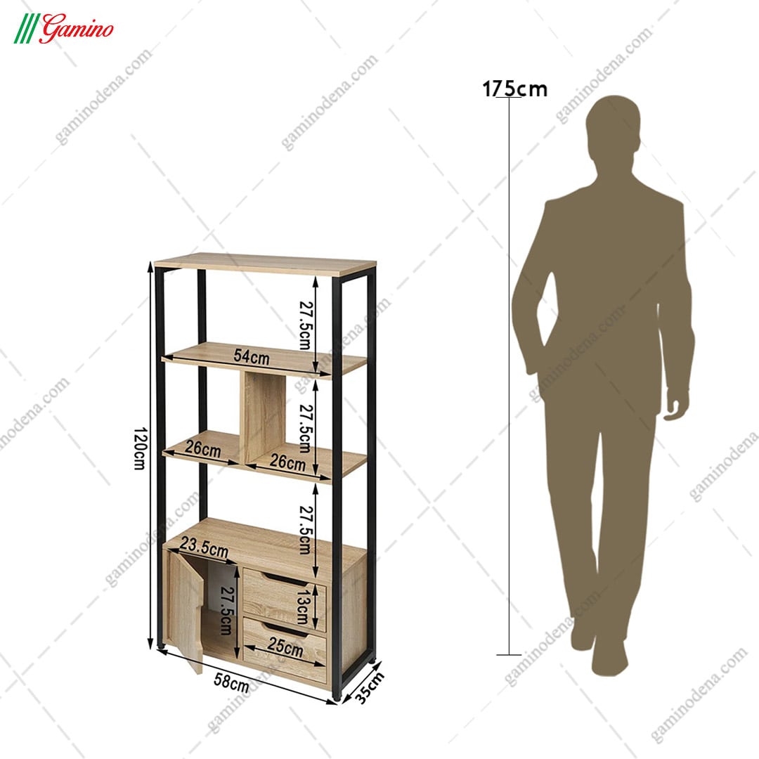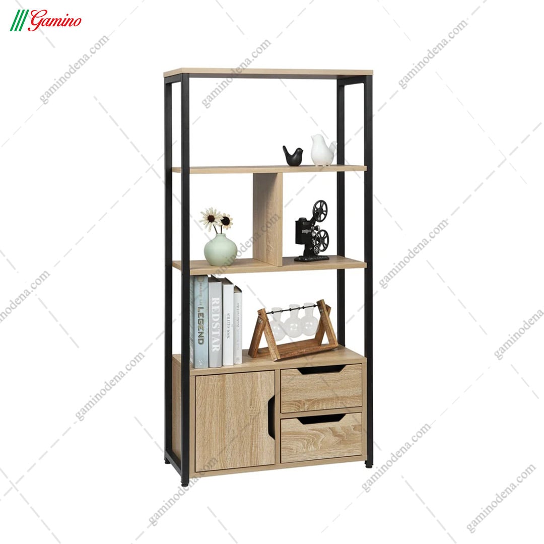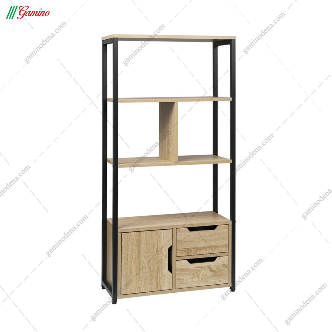 کتابخانه خانگی مدرن چوب و فلز مدل k101