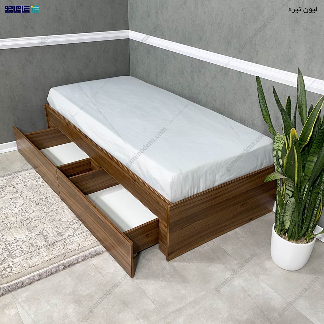 مهم: این محصول ترکیب رنگ پیشفرضی ندارد. رنگ تخت خواب این محصول (لیون تیره) و رنگ دراور آن (تمام سفید) است.