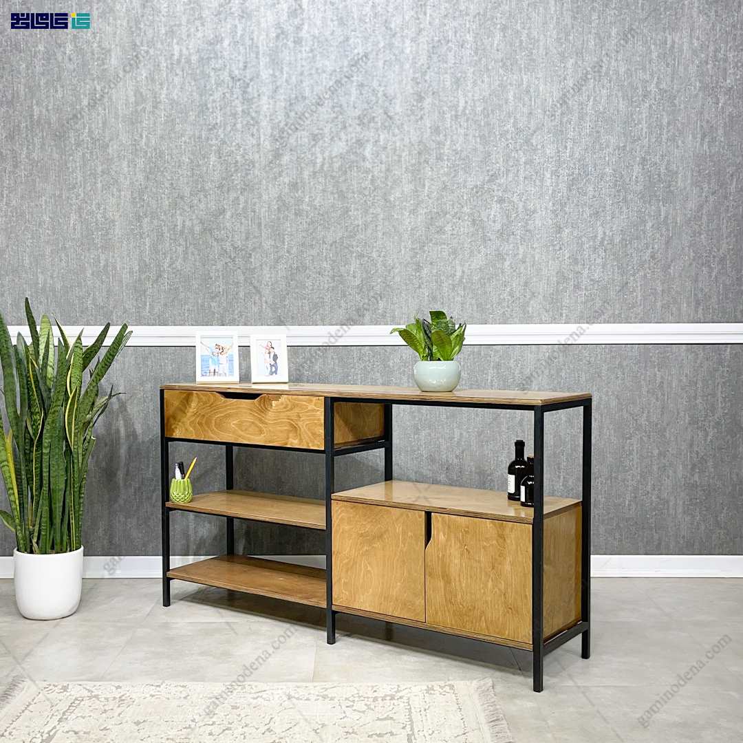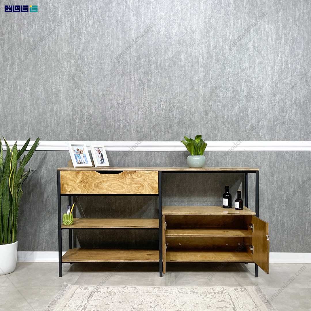 میز علاوه بر طبقات متعدد دارای یک کشو و یک کمد نیز می باشد. فریم کار از پروفیل های 20*20 با رنگ کوره ای مشکی که زیبایی کار را کامل نموده است.