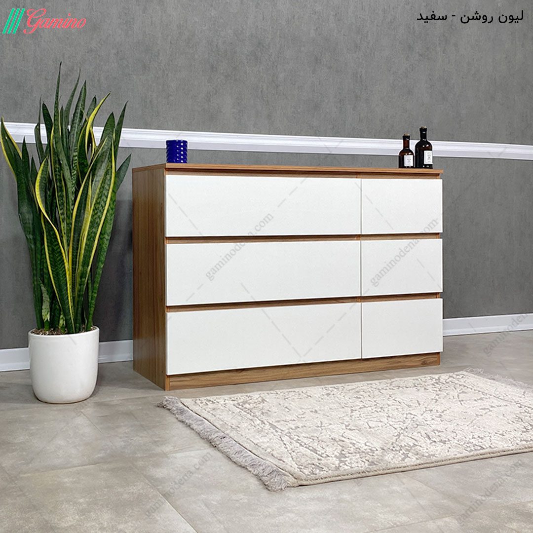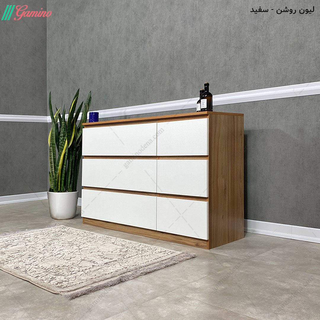 شما عزیزان می توانید با خرید دراور شیک موجود که به صورت دو رنگ تشکیل شده است یک دکوراسیون مدرن را در کنار دیگر لوازم منزلتان از جمله؛ کمد لباس جدید، میز آرایش قدی و یا سایر مصنوعات چوبی خود، تخت خواب اسپرت و … ست کنید.