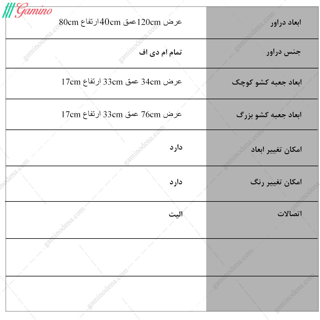 ساخت با رنگ و ابعاد و تعداد کشو به دلخواه مشتری نیز انجام میشود.