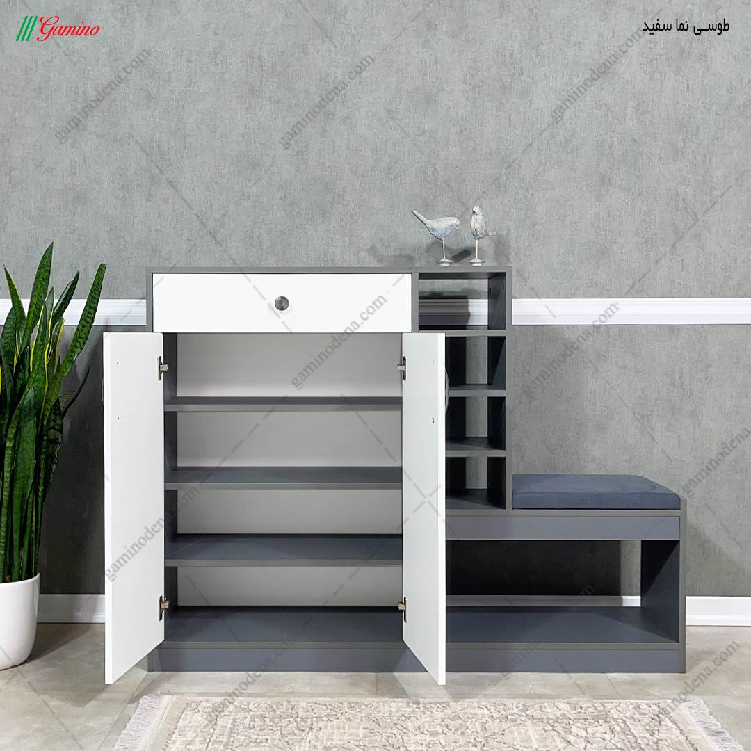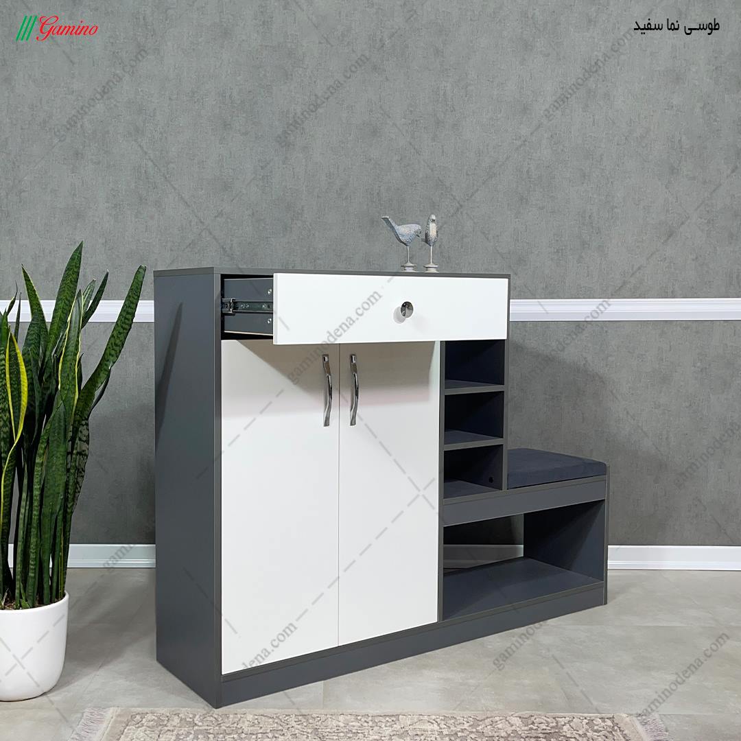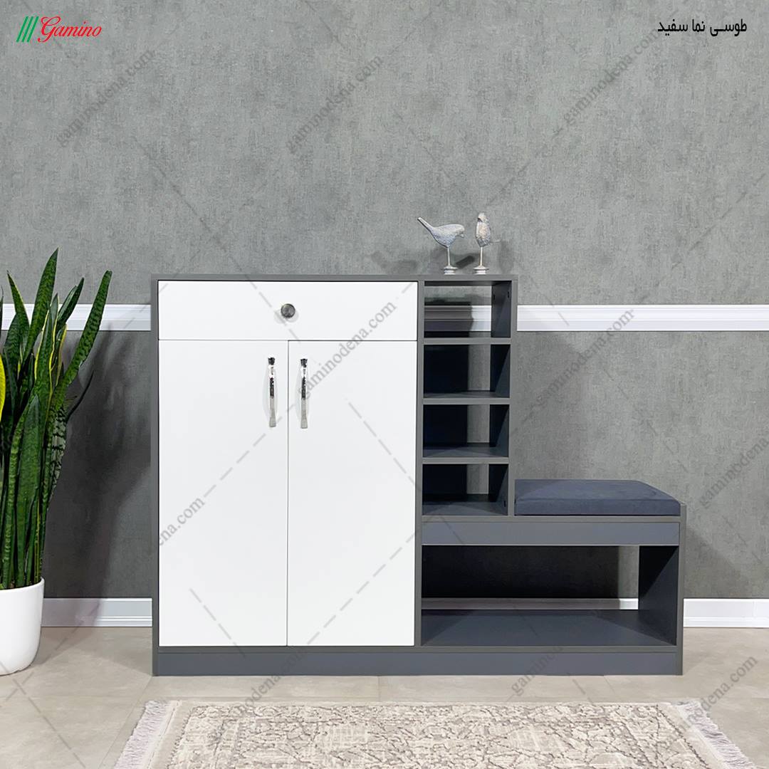 همچنین می توانید جهت زیباتر و جذاب تر شدن هرچه بیشتر نما و دکوراسیون منزلتان این جاکفشی را با دیگر لوازم خانه خود همچون؛ میز تلویزیون مبلمان منزل ، میز جلو مبلی خود از لحاظ رنگ بندی و مدل ست نمائید و از دکور بوجود آمده نهایت لذت را ببرید.