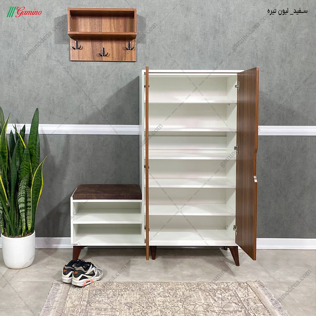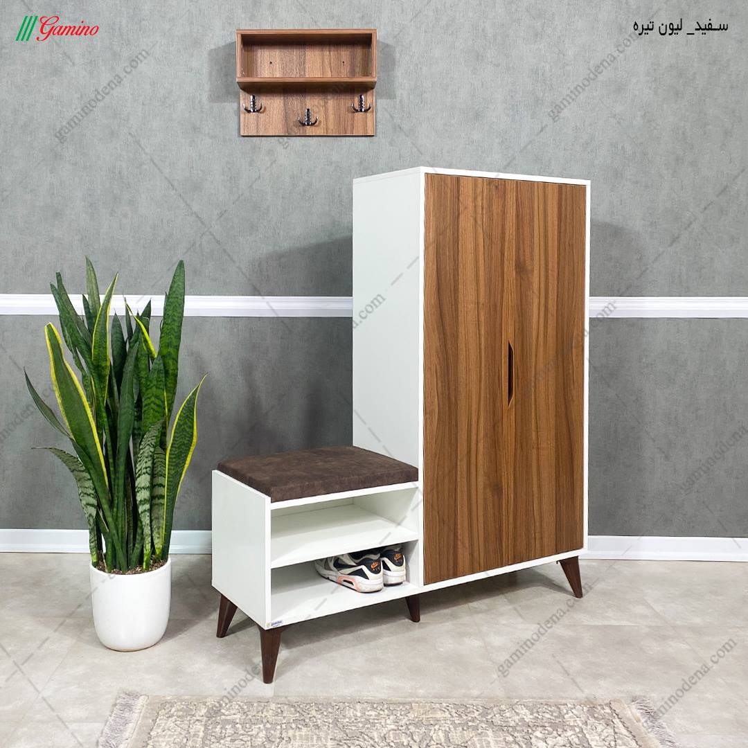 - جاکفشی دارای یک کمد دو درب، یک بخش نشیمن و باکس رخت آویز است.