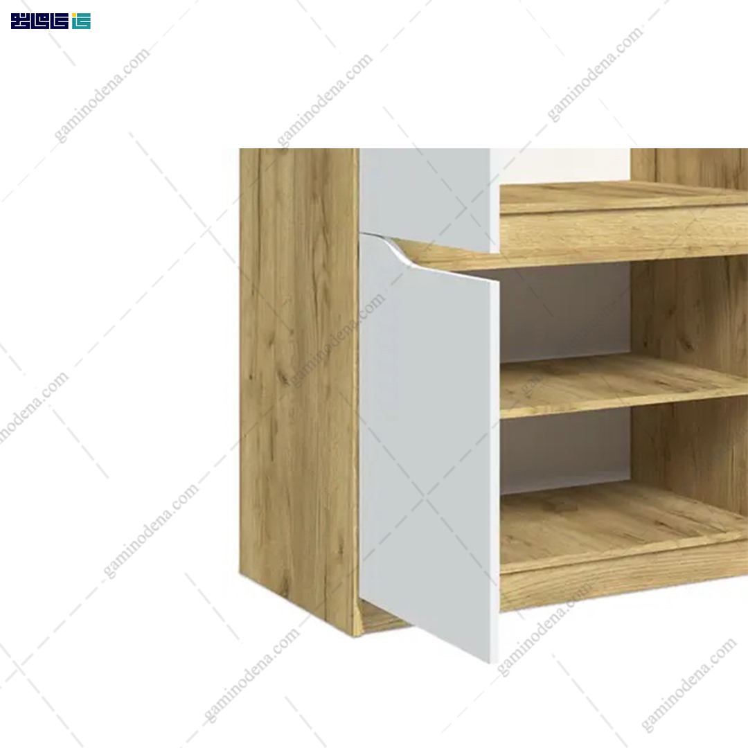 - بخش پایینی دارای یک طبقه که کمد پایین را به دو بخش تقسیم کرده است.
