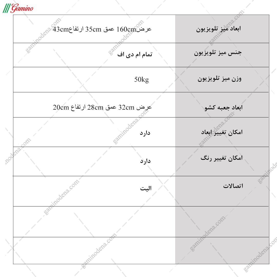 - ابعاد کلی محصول : عرض 160 * عمق 35 * ارتفاع 43 سانتی متر