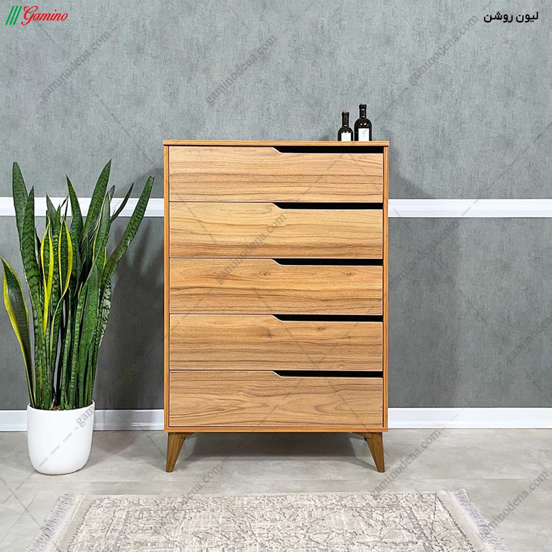 مهم: این محصول ترکیب رنگ پیشفرضی ندارد. رنگ تخت خواب این محصول (لیون تیره و مشکی) و رنگ دراور آن (تمام لیون روشن) است.