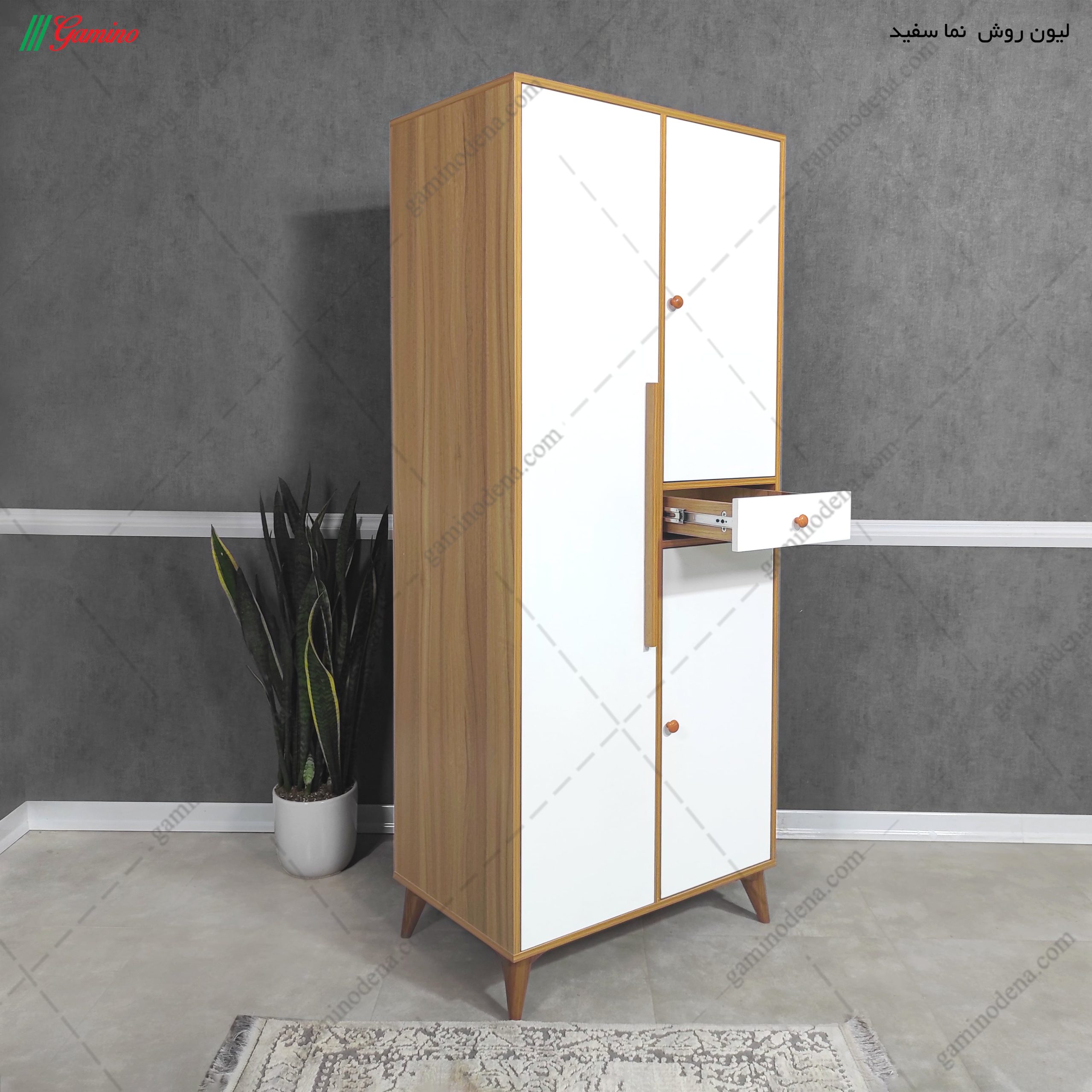 - کمد دارای 3 درب و یک کشو کوچک است