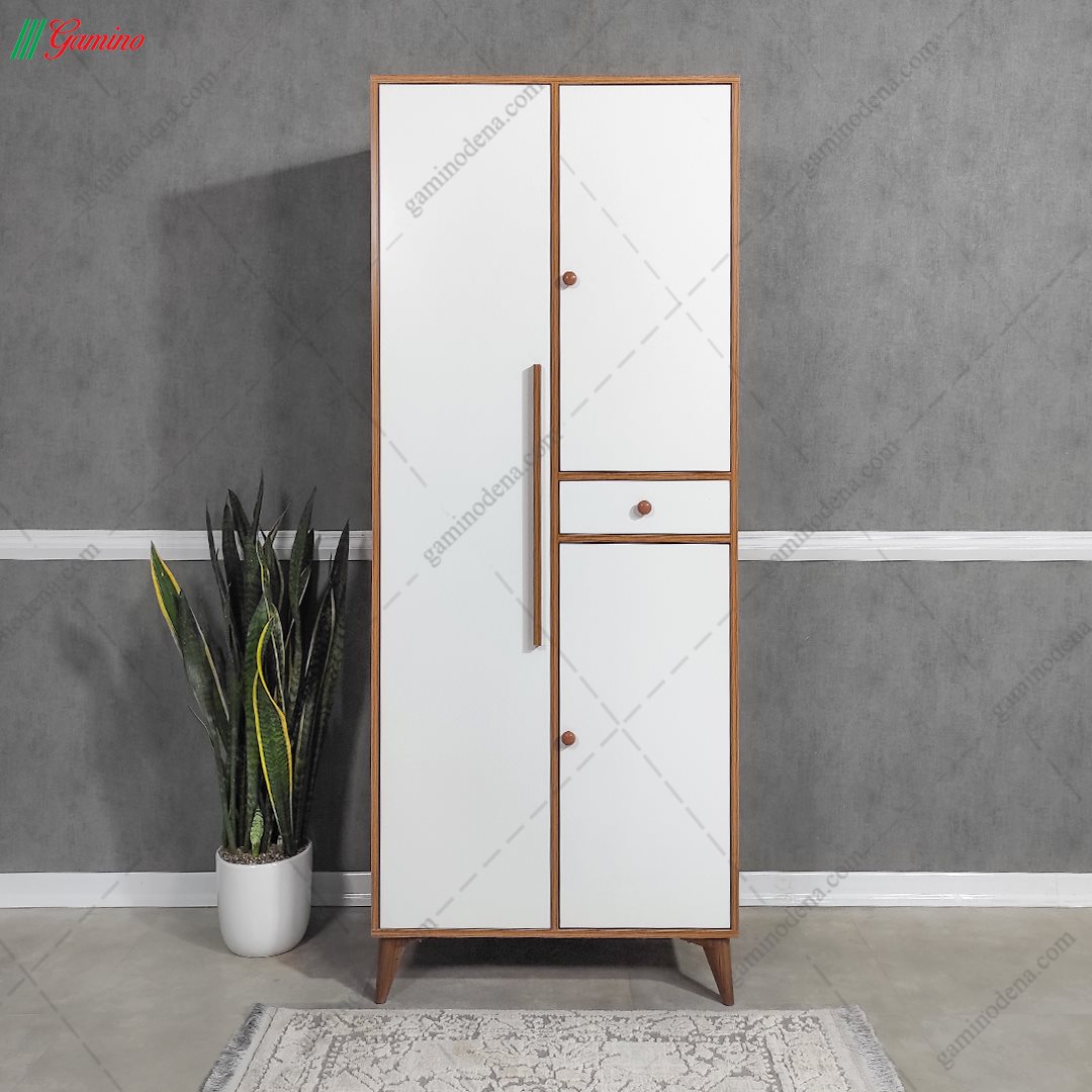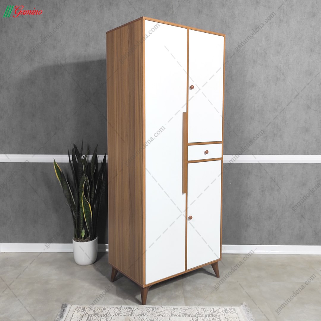 همانقدر که تخت خواب برای اتاق یک عنصر اساسی حساب می شود، کمد نیز دارای اهمیتی حتی بیشتر از تخت خواب است. کمد لباس آذین به صورت 3 درب طراحی شده فضای کافی برای آویزان نمودن لباس ها توسط 2 بخش رگال و 2 قفسه برای قرار دادن لباس ، کیف ، چمدان و غیره و 1 کشو در سایز کوچک ربه شما می دهد. در زیر کمد پایه هایی تعبیه شده تا نمای مدرنتری به کمد بدهد و دستگیره های امروزی آن به جلوه بیشتر کمک می کند.