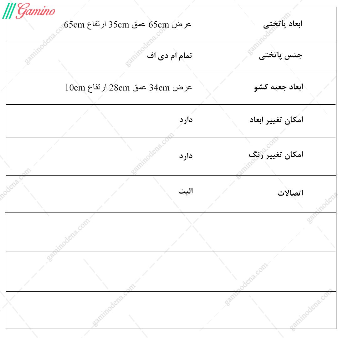 پاسخ: به دلیل اینکه تمامی محصولات، تولید خود مجموعه گامی نو دنا میباشد برای پاتختی نیز امکان انتخاب رنگ و ابعاد و تعداد کشوهای محصول توسط مشتری وجود دارد و میتوانید به صورت حضوری و یا غیرحضوری از طریق تماس با واحد فروش از این موضوع اطمینان حاصل کنید.