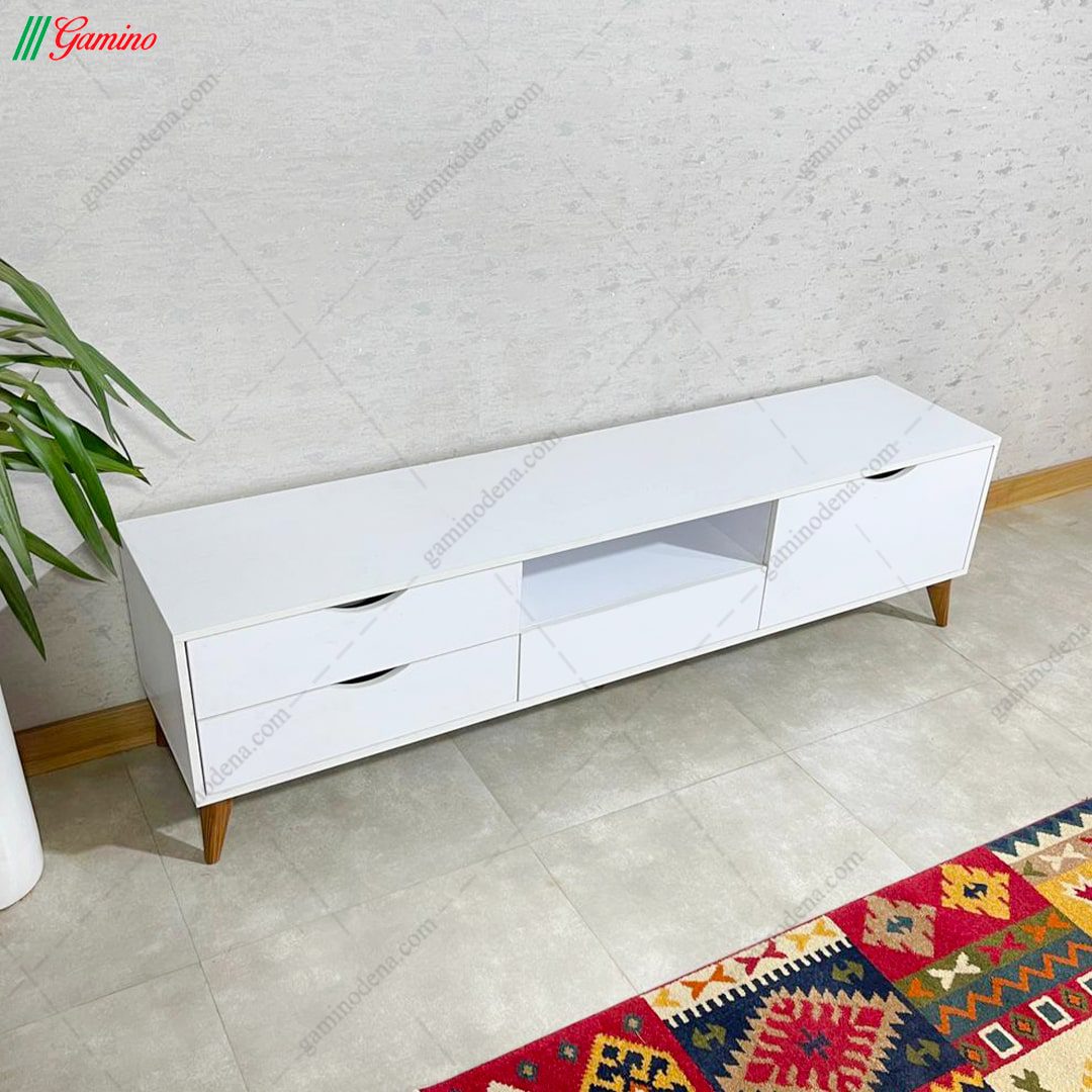 میز تلویزیون مدرن ساده و شیک سفید پایه دار مدل چکاوه