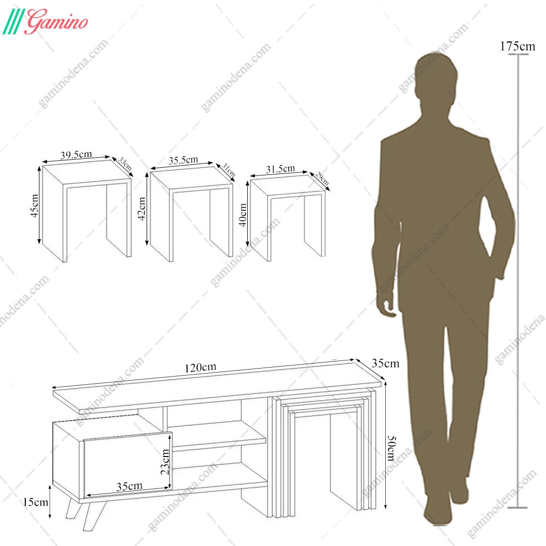 - دارای 3 میز عسلی که در زیر میز جای داده شده است