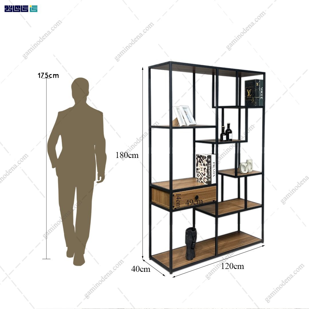 مشخصات کتابخانه چوبی خانگی فلز و چوب مدل فرهان