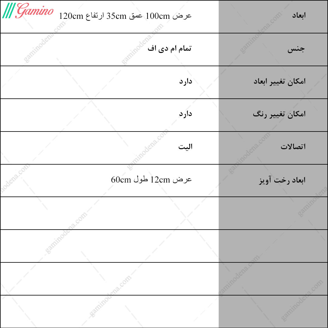- ابعاد کلی محصول : عرض 100 ، عمق 35 و ارتفاع 120 سانتی متر