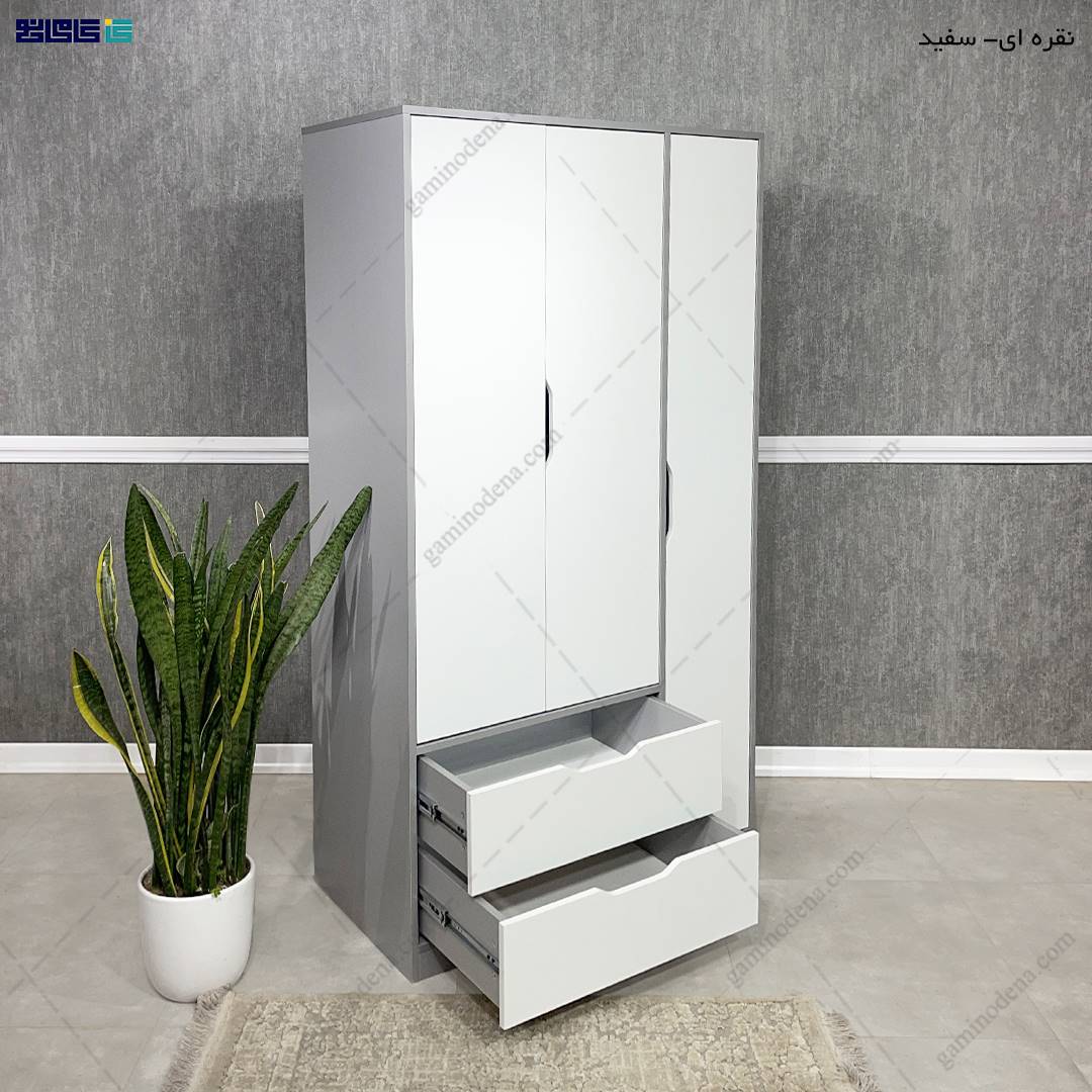 مهم : در عکس مشاهده شده رنگ کمد ترکیب رنگ نقره ای و سفید و کتابخانه تمام سفید به صورت پیش فرض است. اگر می خواهید رنگ های دیگری انتخاب کنید، می توانید با مشاوران فروشگاه گامی نو یا در یادداشت های پایین صفحه، نظر و سلیقه خود را با ما در میان بگذارید تا ما محصول را مطابق با سلیقه شما تولید کنیم.