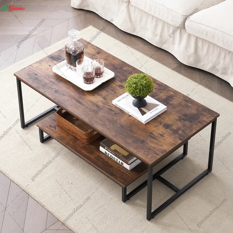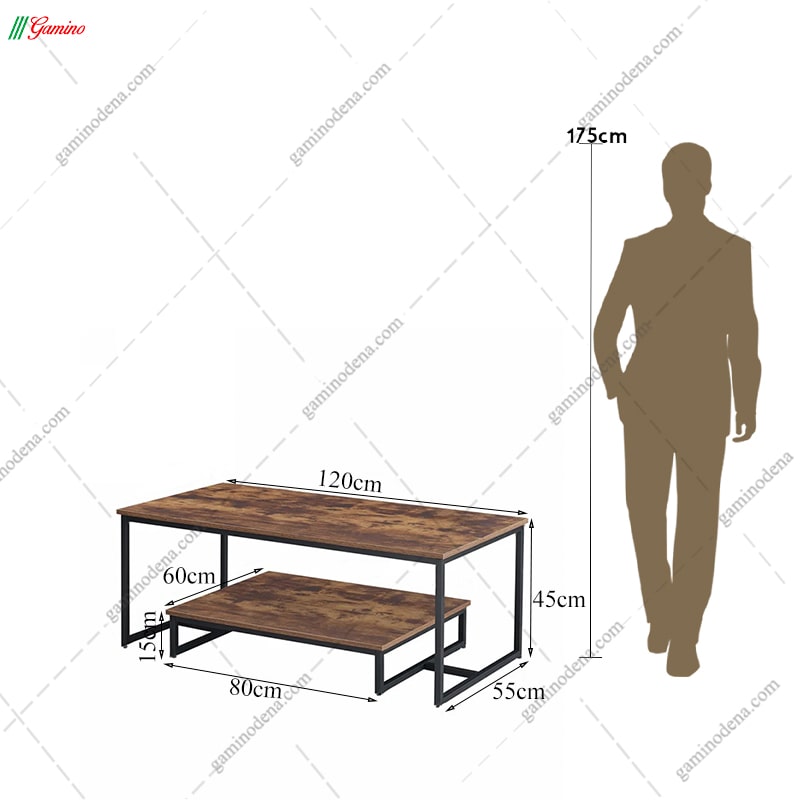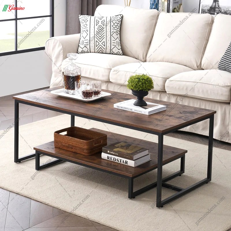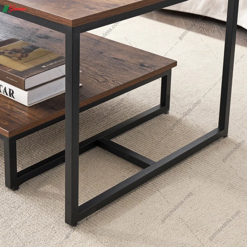 - در قسمت زیرین میز جلو مبلی نیز یک میز به وسیله اتصالات فلزی به یکدیگر چسبیده اند.