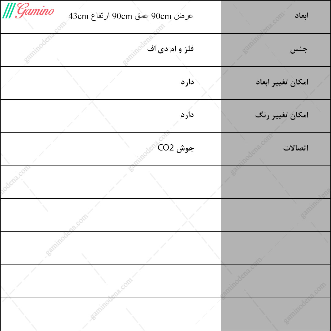 - ابعاد محصول : عرض 90 و عمق 90 و ارتفاع 43 سانتی متر