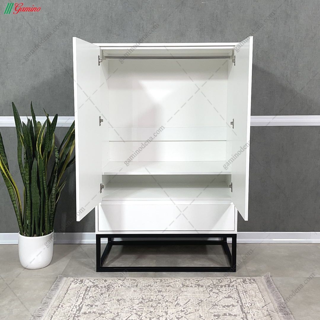 - پایه های این کمد لباس نیز از فلز رنگ ثابت کوره ای مشکی می باشد.