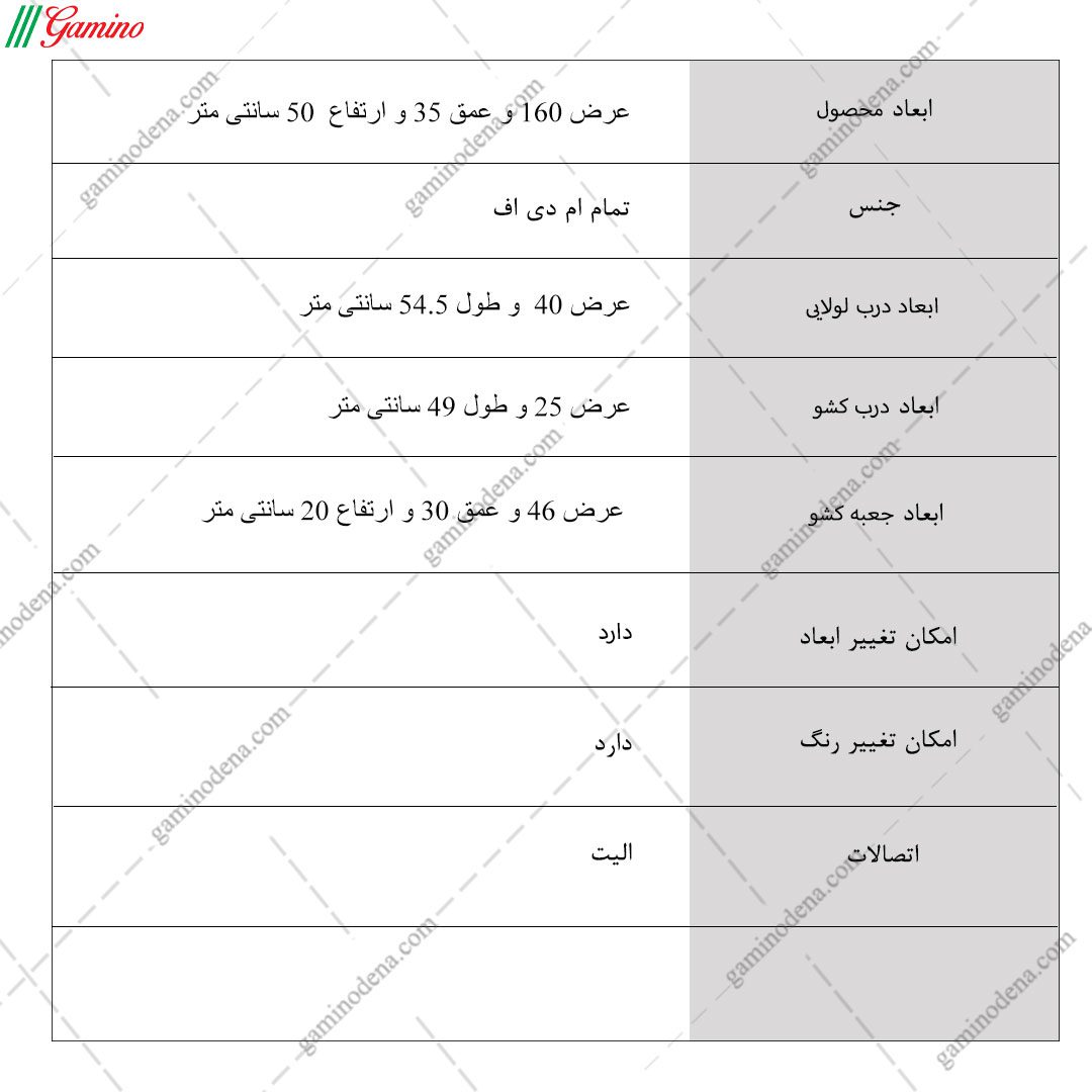 - ابعاد محصول : عرض 160، عمق 35 و ارتفاع 50 سانتی متر