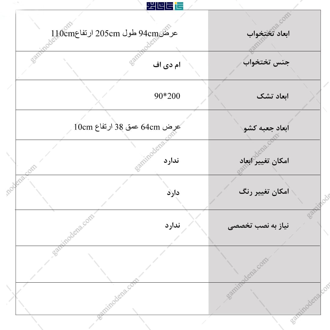 | جنس تخت | ام دی اف درجه یک ضد خش |