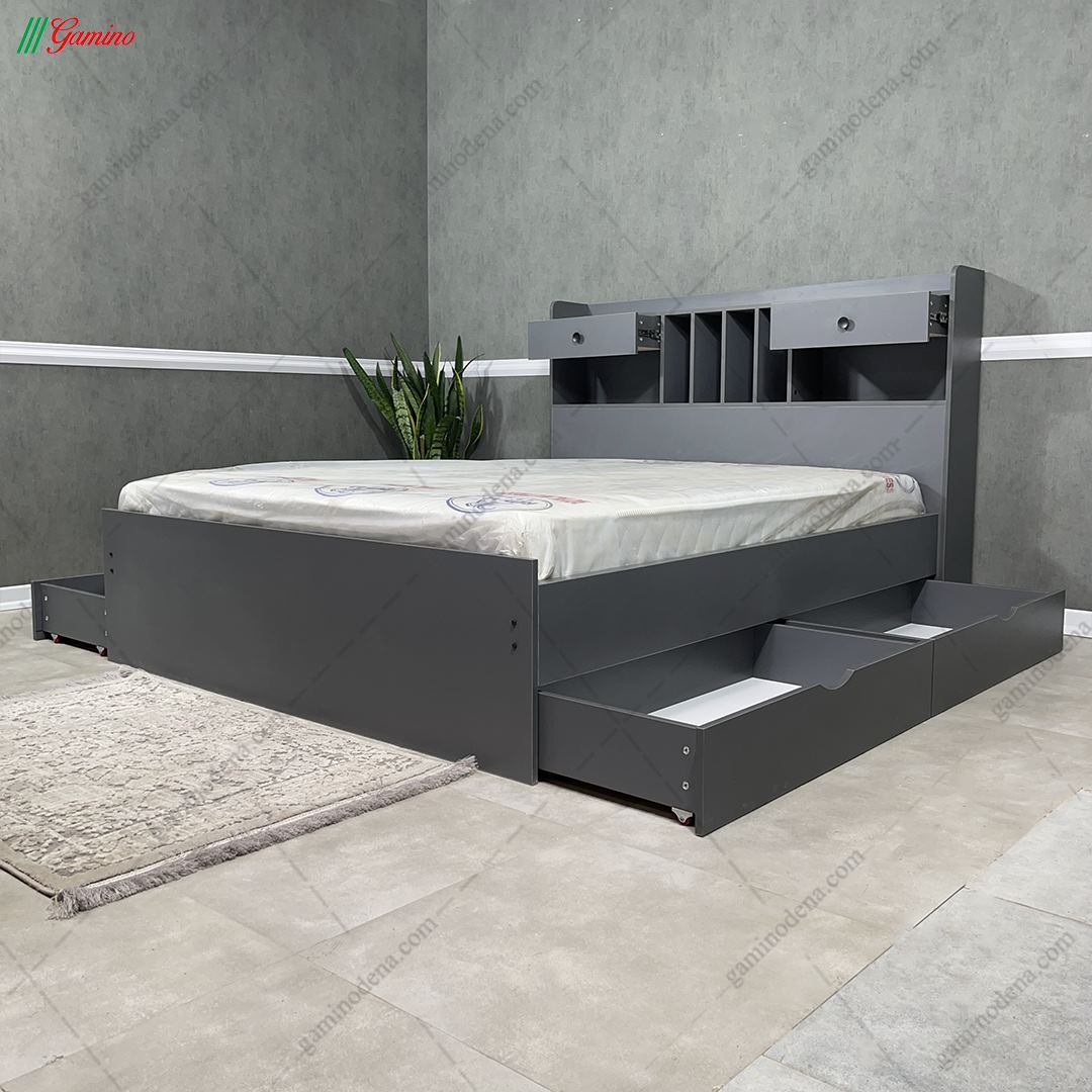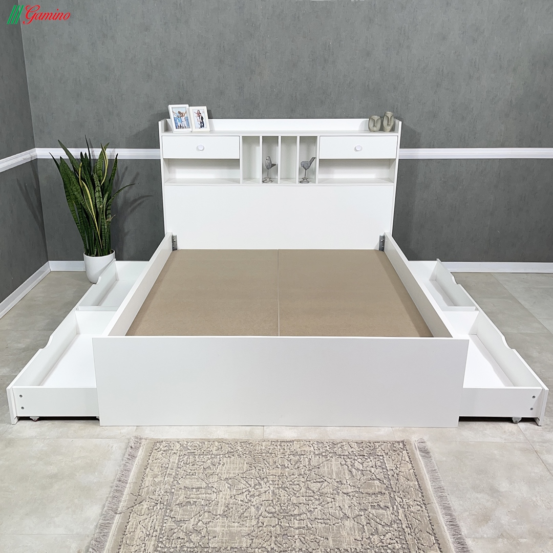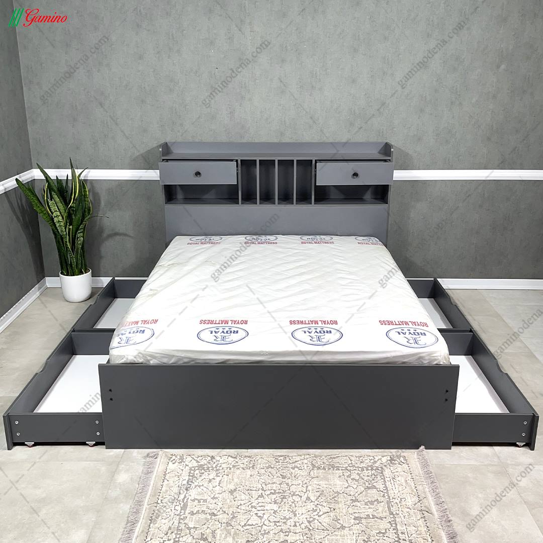 - در قسمت بدنه تخت نیز دو کشو در سمت راست تخت و دو کشو در سمت چپ و در مجموع 4 کشو قرار داده شده است.