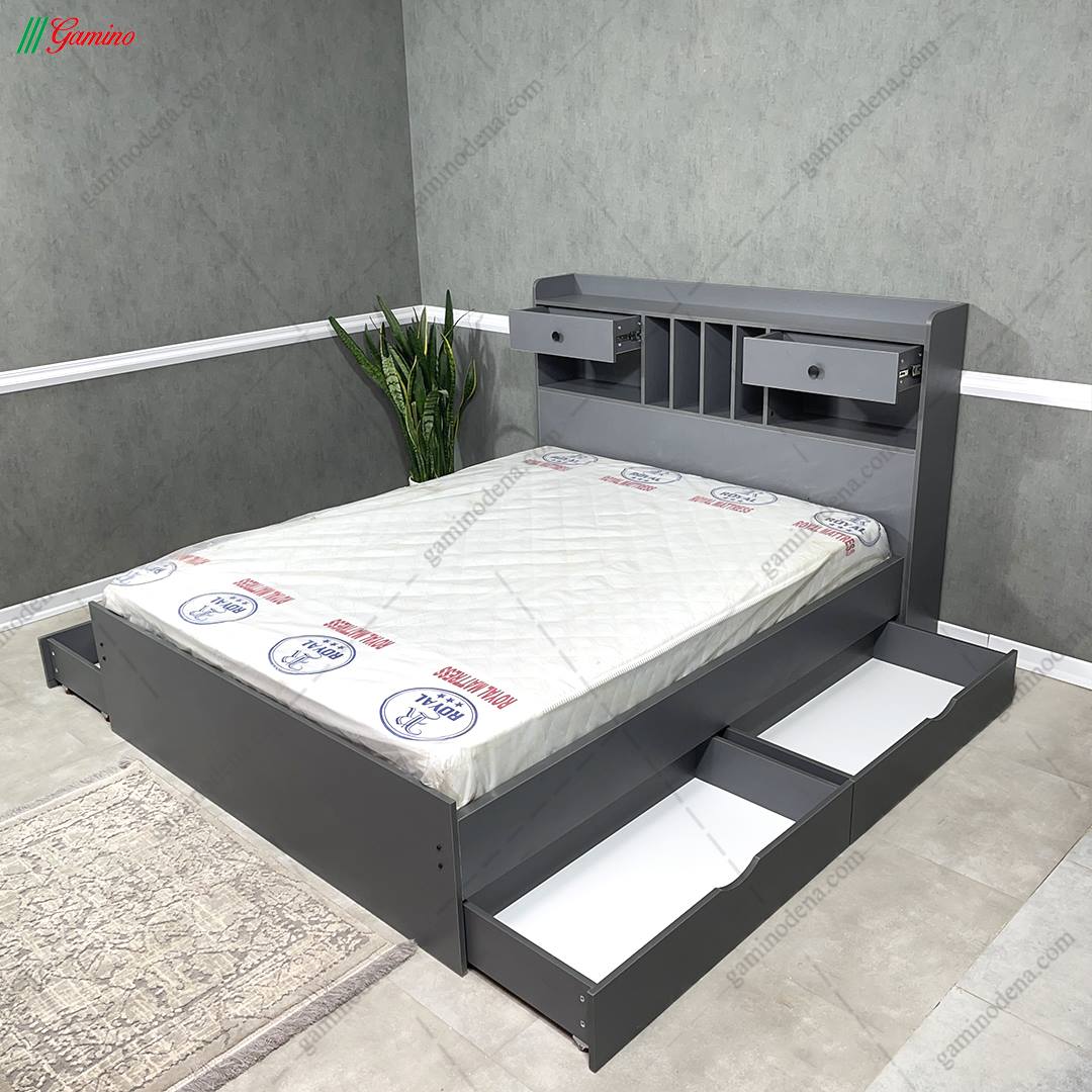 تخت خواب ام دی اف باکس و کشودار هلیا دو نفره