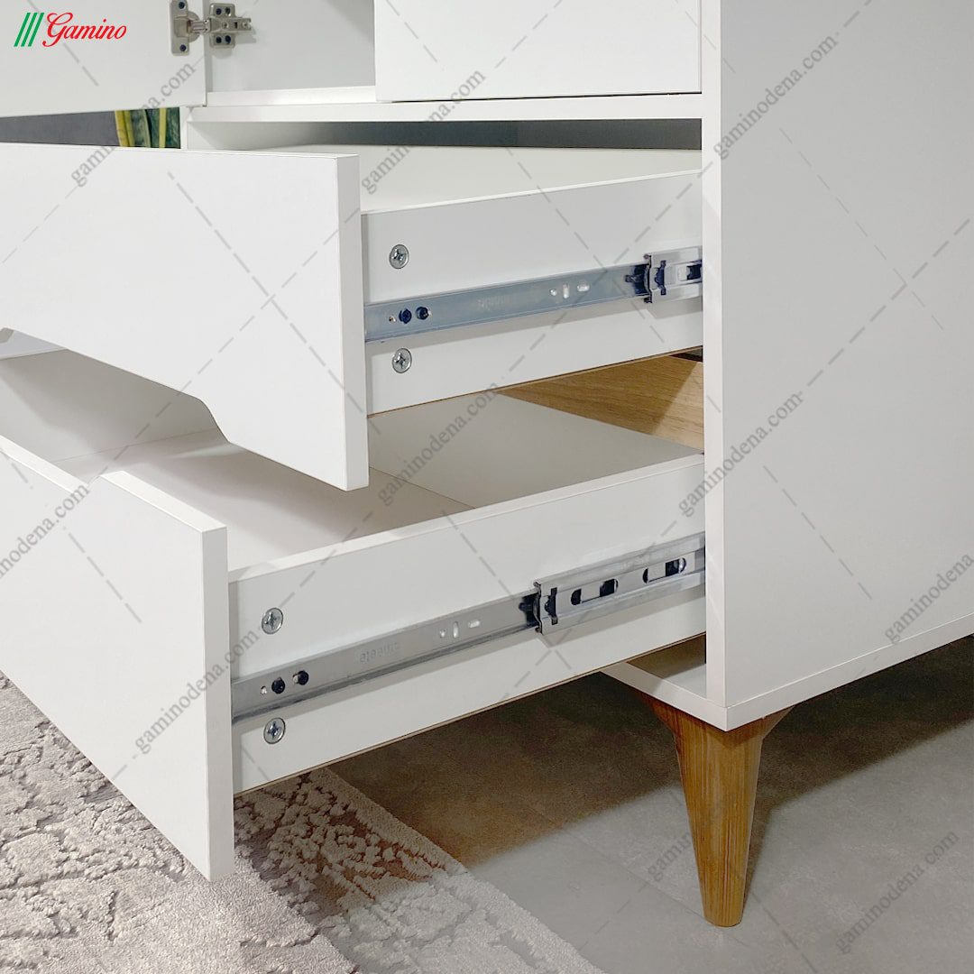 - برای کشو از ریل پهن سه تیکه فلزی و ساچمه ای استفاده شده است.