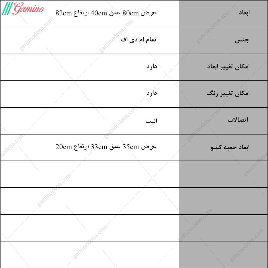 - ابعاد کلی محصول : عرض 80، عمق 40 و ارتفاع 82 سانتی متر