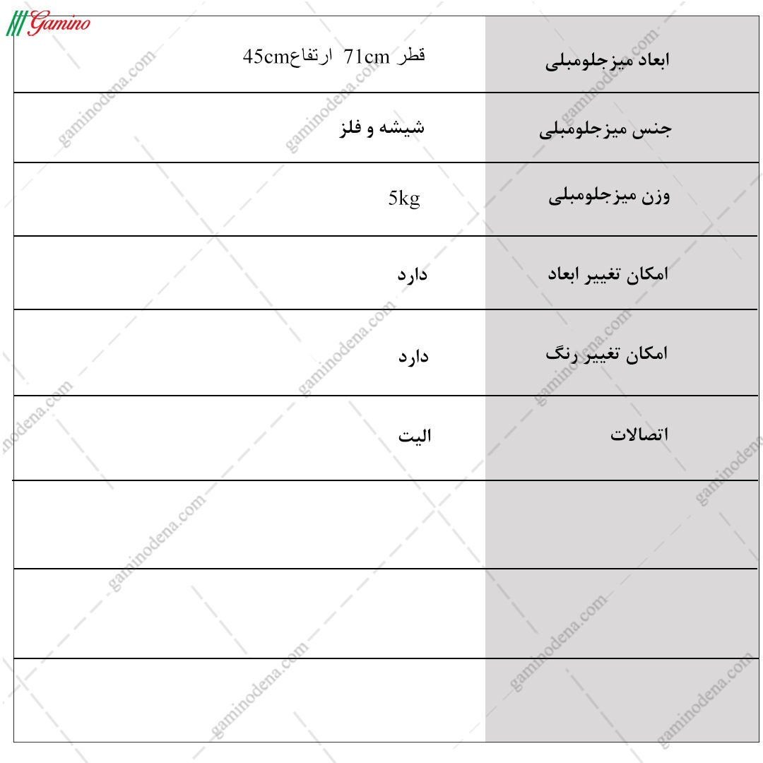 - ابعاد محصول: قطر 71 * ارتفاع 45 سانتی متر