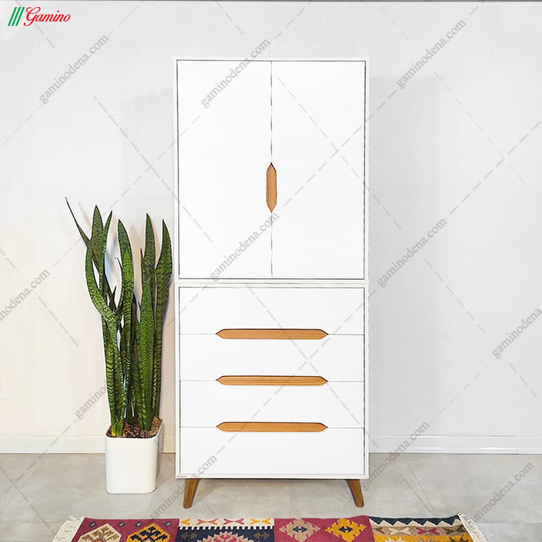 پاسخ: برای ساخت هر کمد از جنس و مواد اولیه مختلفی استفاده می شود، امّا این کمد از جنس ام دی اف با دانسیته بالا تولید می شود. همچنین پایه های کار شده در محصول از بالاترین کیفیت پی. وی سی و. رنگ پلی اورتان، رنگ خورده به سفارش گامی نو دنا ساخته شده است.