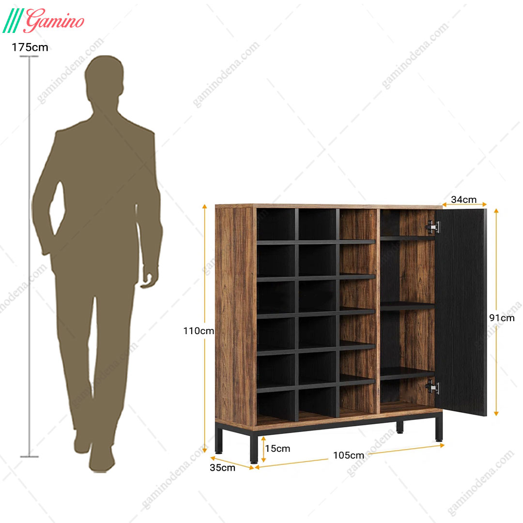 - دارای یک کمد با قفسه هایی با ارتفاع متفاوت برای انواع کفش