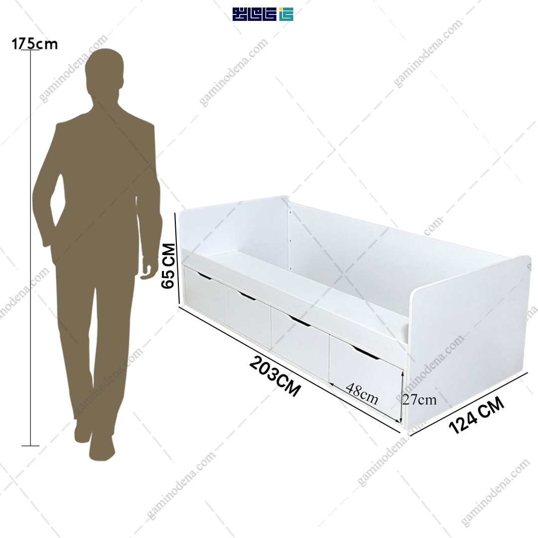 - ابعاد تخت : عرض 124 * طول 203 * ارتفاع 65 سانتی متر