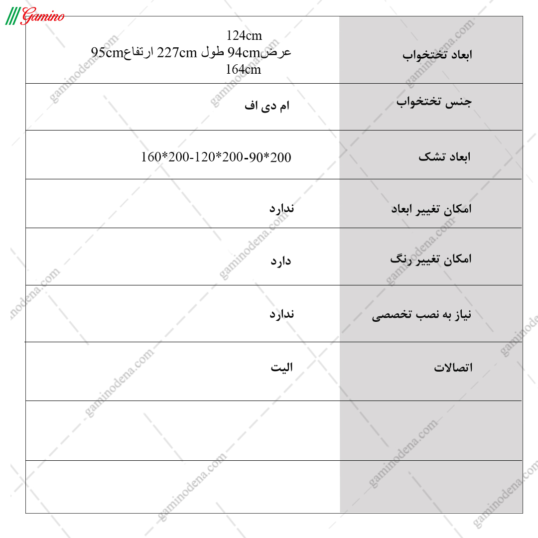 | جنس تخت | ام دی اف درجه یک ضد خش |