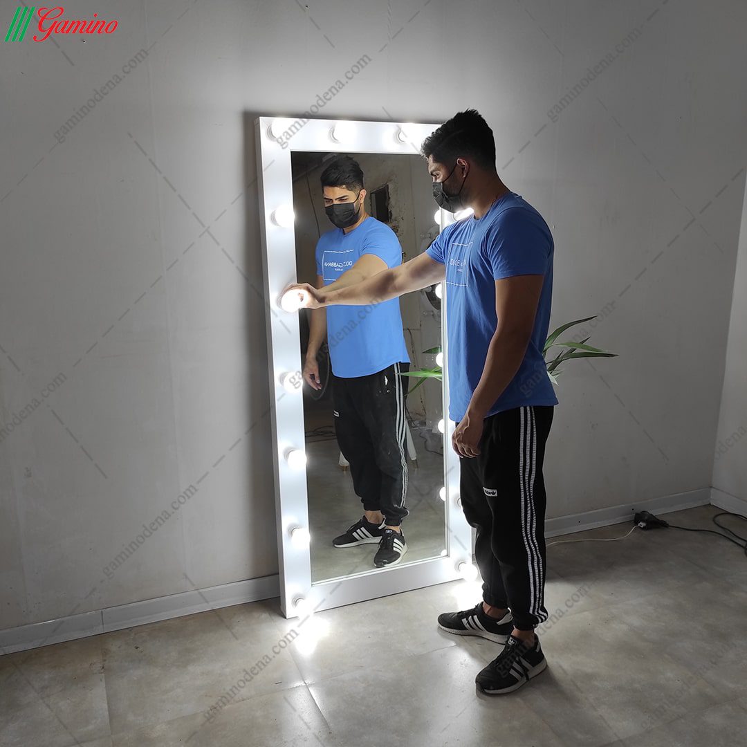 آینه گریم ایستاده وسیله ای مناسب برای خانه های شما عزیزان که می توانید با خرید این محصول یک آینه بسیار زیبا با چراغ های نورانی برای خود تهیه کنید. این محصول که به تازگی به محصولات مجموعه گامی نو اضافه شده است و با استقبال بالایی نیز روبرو شده و مناسب برای مزون های لباس، بلاگرها و سالن آرایش می باشد که میتوان مورد استفاده قرار بگیرد.