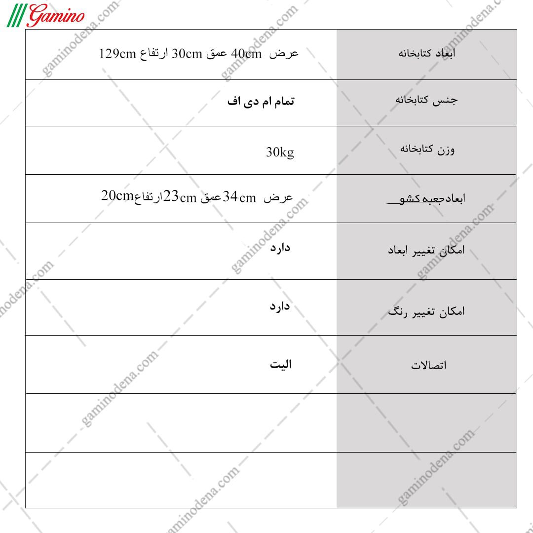 - ابعاد کلی محصول : عرض 40 ، عمق 30 و ارتفاع 129 سانتی متر