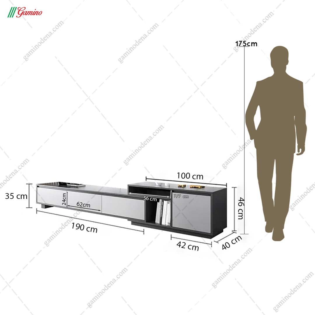 میز تلویزیون MT100 با ظاهری ساده اما زیبا از بهترین نوع MDF ضد خش تولید شده است. زیرا در انتخاب یک محصول کیفیت مهمترین فاکتور خرید است . امروزه یکی از نکات مهم در خرید میز تلویزیون زیبایی در عین سادگی است. این میز تلویزیون از دو بخش تشکیل شده است که همین امر به شما این امکان را میدهد که که عرض آن را نسبت به محل قرار گیری بین 280 تا 232 سانتی متر تغییر دهید. با توجه به برخوردی از 3 کشو و یک کمد و دو باکس فضای مناسبی برای مدیریت وسایل شما فراهم میکند و شما میتوانید از این فضا ها برای قرار دادن وسایل دکوری و غیره استفاده نمایید. داشتن یک میز تلویزیون بزرگ به شما برای لوکس تر کردن خانه تان کمک میکند.