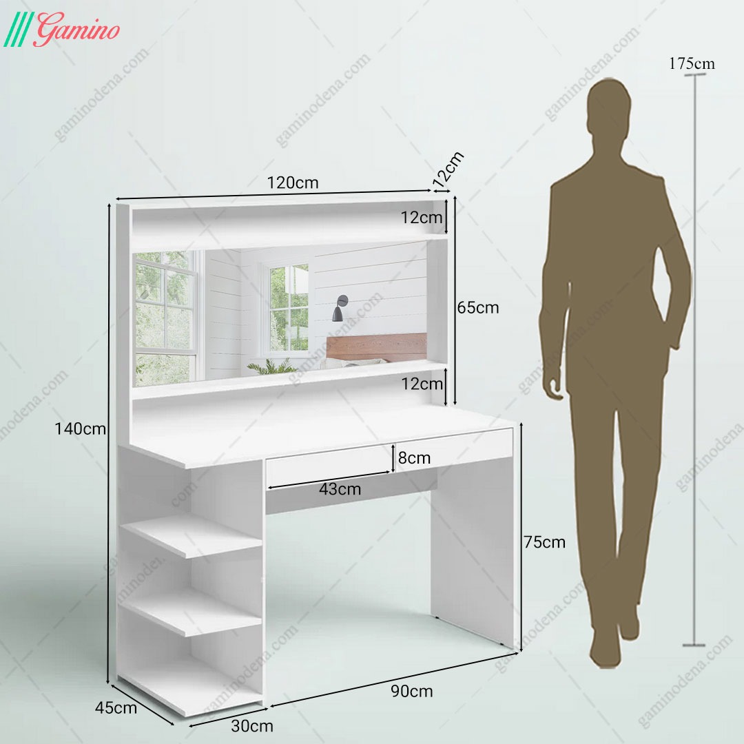 | نوع محصول | میز آرایش با آینه، طبقه، کشو، قفسه در بالا و پایین آینه |
