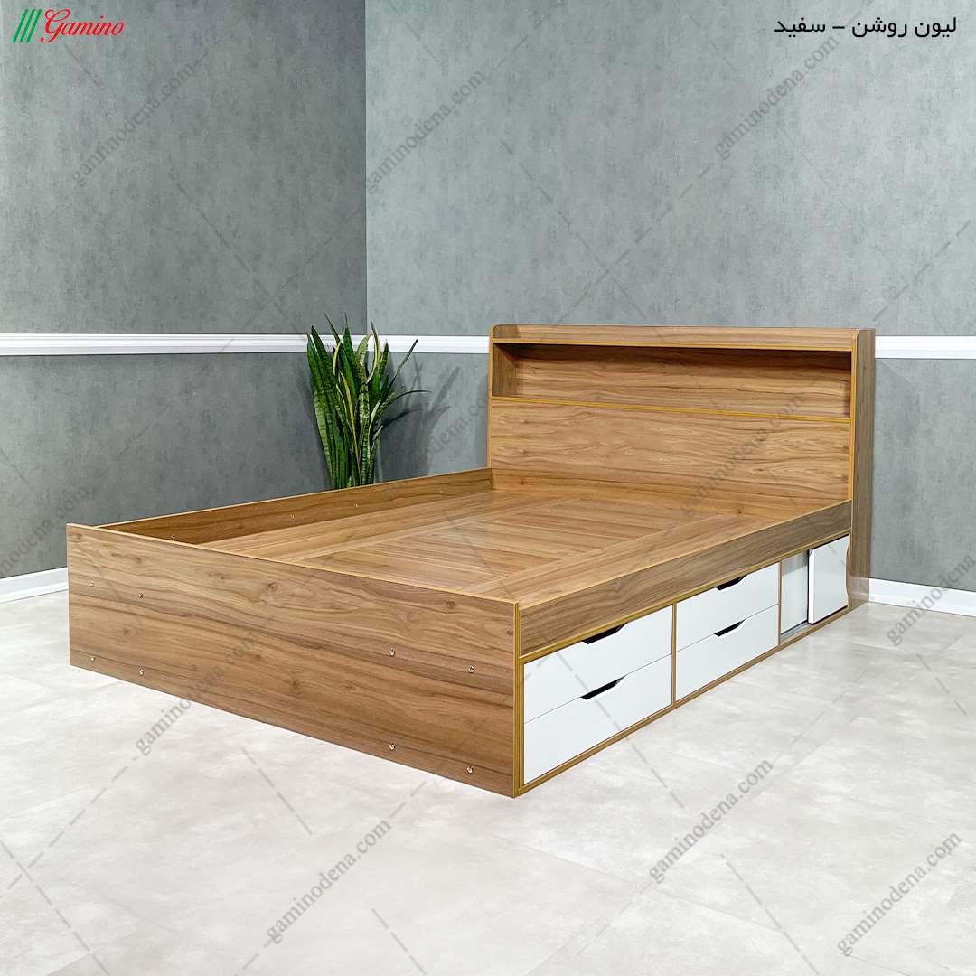مهم: این محصول ترکیب رنگ پیشفرضی ندارد. رنگ تخت خواب این محصول (لیون روشن نما سفید) و رنگ دراور آن (تمام لیون روشن) است.