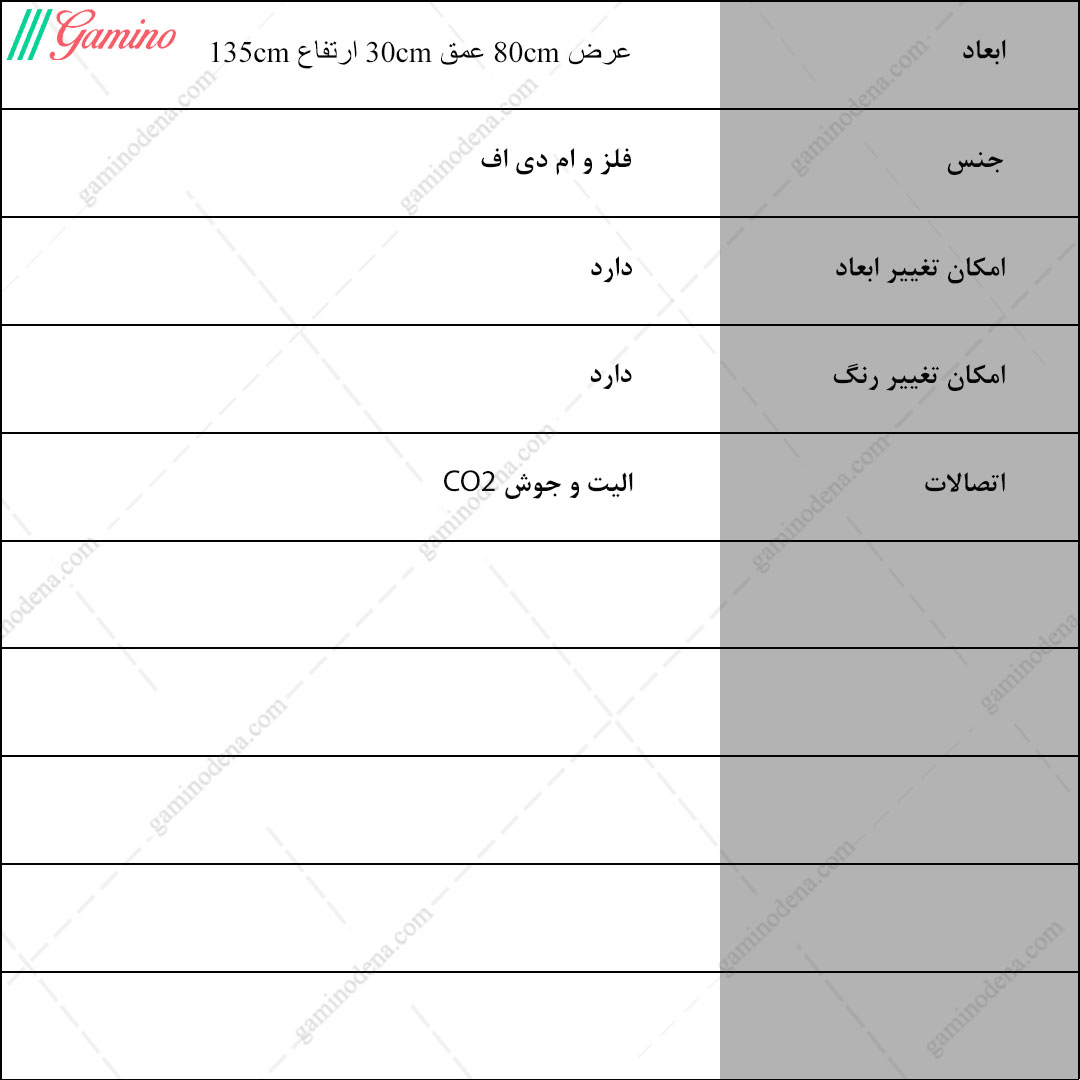 - ابعاد کلی محصول : عرض 80 ، عمق 30 و ارتفاع 135 سانتی متر