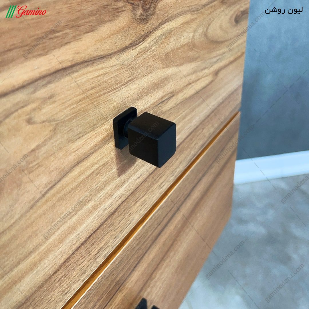 - رنگ بندی : رنگ درب کشو و طبقات لیون روشن و رنگ فلز مشکی کوره ای و ثابت ( قابل تغییر طبق کالیته)