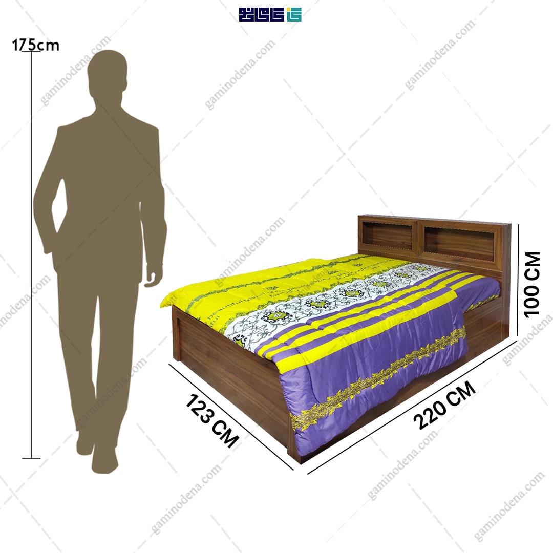 - ابعاد تخت : عرض 124 * طول 220 * ارتفاع 100 سانتی متر