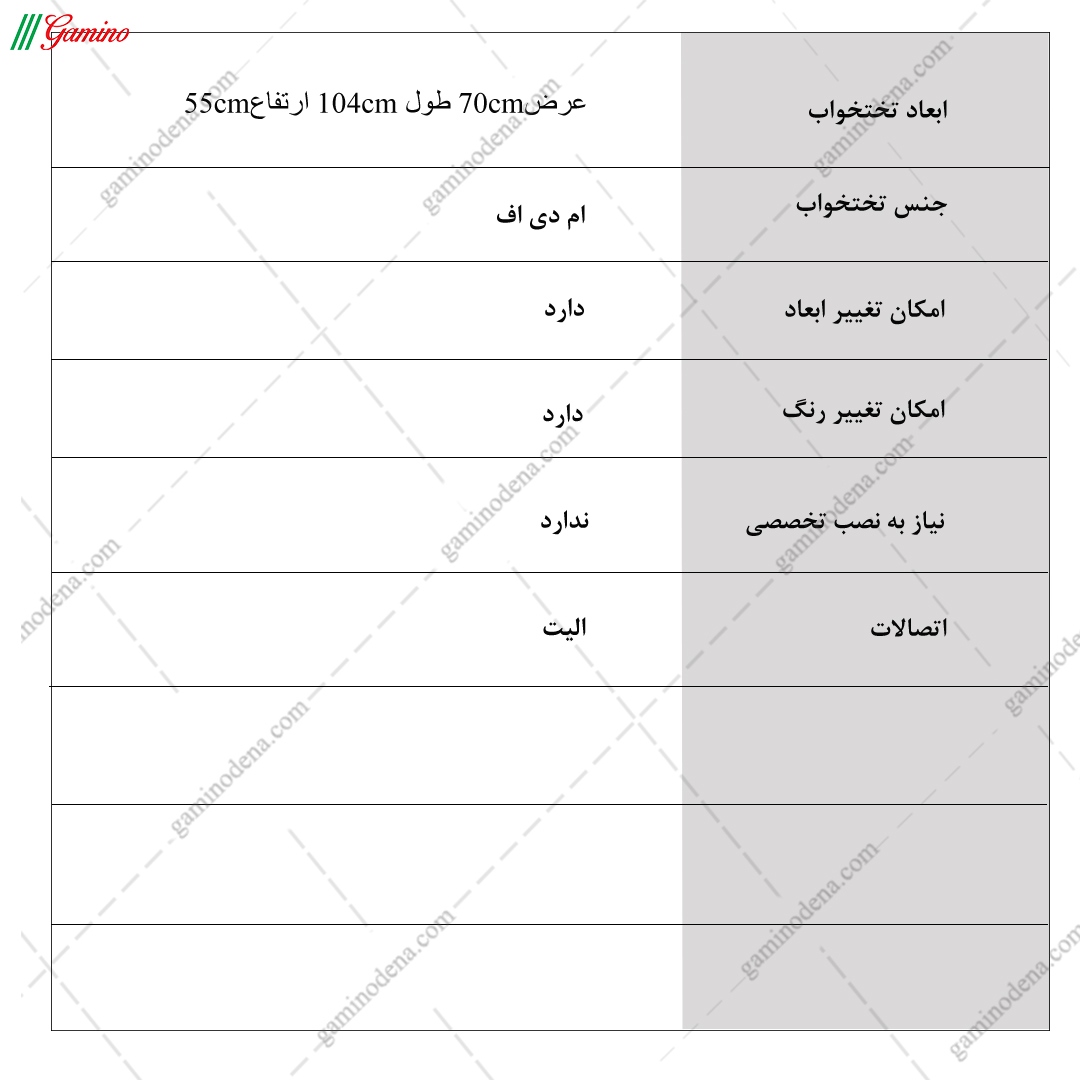 - ابعاد کلی محصول : عرض 104 ، عمق 70 و ارتفاع 55 سانتی متر