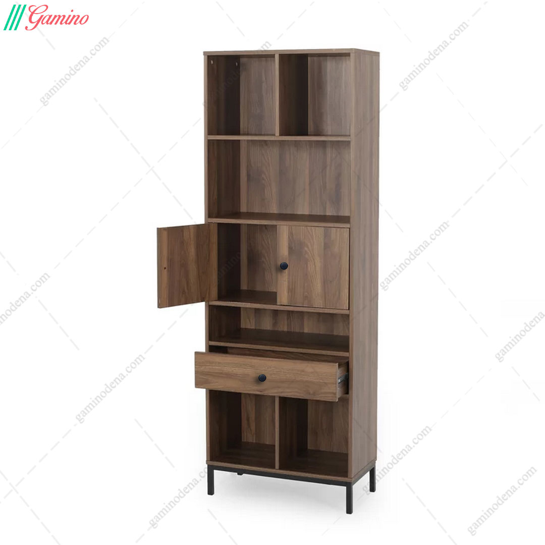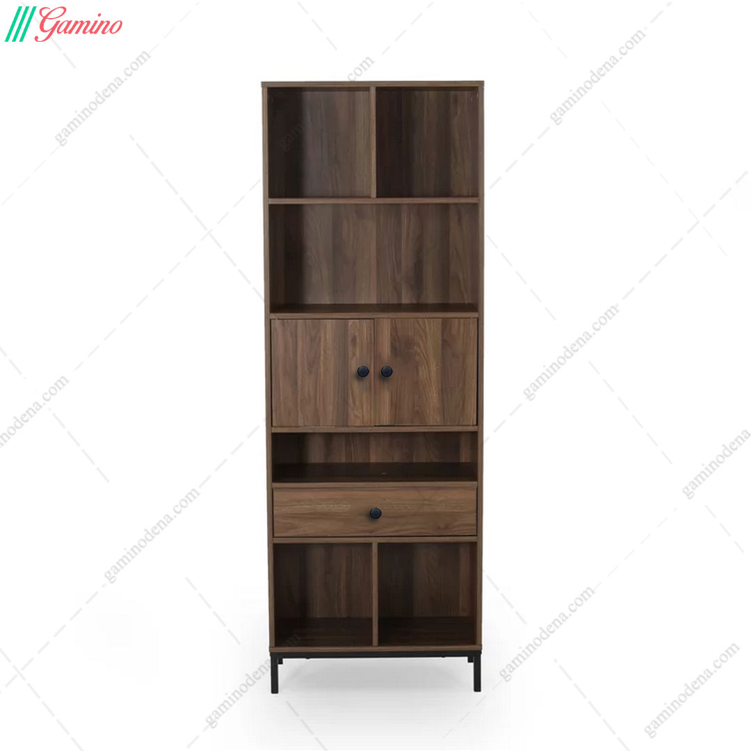 کتابخانه چوبی خانگی چوب و فلز اداری مدل رونا